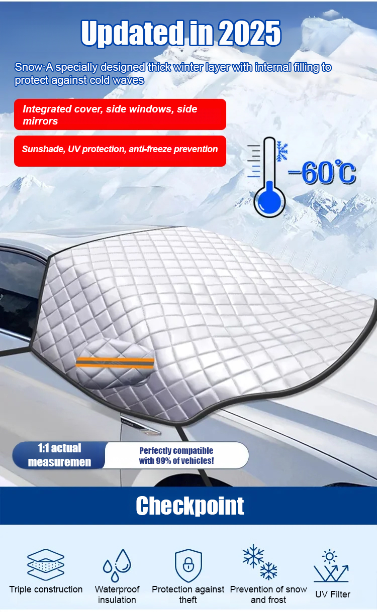 【-60℃ extreme cold weather resistant❄】Car sunshade with anti-frost and snow protection✅Cars will no longer need to be de-iced!