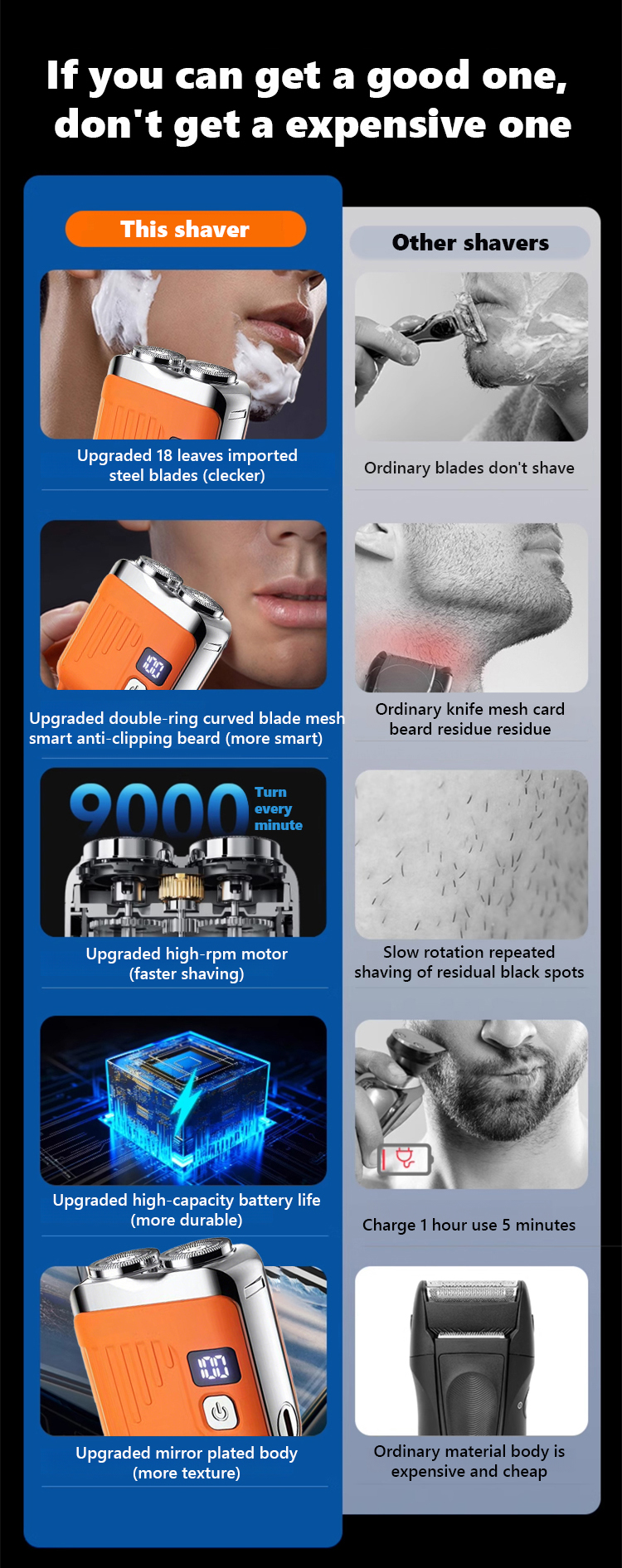 German craftsmanship, freely switchable between dry and wet shaving. Can be used all over the body. 99% efficient shave without damaging the skin 👍 Portable, long battery life, waterproof and easy to clean, with global cumulative sales exceeding 10 million.